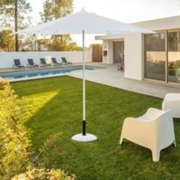 Доп. инфо:: Стальная конструкция с порошковым покрытием. Стойка 38 мм. 6 спиц 10x18 мм. Купол белый из полиэстера.