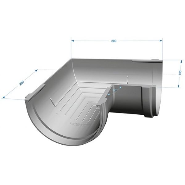 Применение: Крепится на внешних и внутренних углах кровли для соединения желобов под углом 90 градусов для изменения направления движения воды,