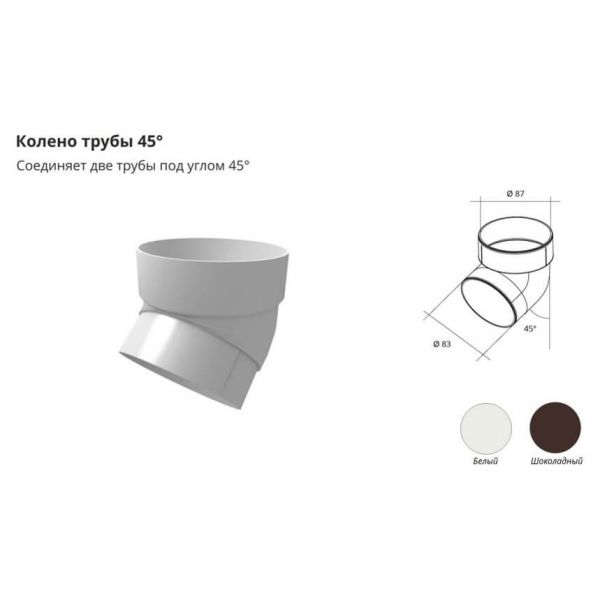 Колено трубы 45°ПВХ Белое , можно купить в интернет магазине Сайдинг-Маркет, от производителя Grand Line. Доставим быстро и по всей России. Цена производителя. Все в наличии на складе и на заказ. Гарантия. Заходи — выбирай!